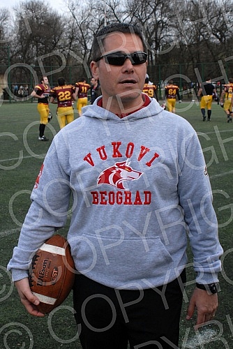 Utakmica drugog kola Sport klub Prve Lige Srbije u Americkom fudbalu izmedju SBB Vukovi i Wild Boars (Kragujevac).