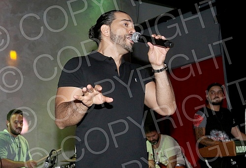 Performance of Adil (Adil Maksutovic) held on raft Na vodi kafana. Nastup Adila (Adil Maksutovic) na splavu Na vodi kafana.