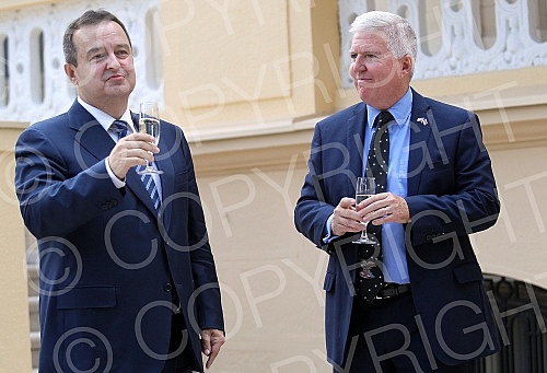 Minister of Foreign Affairs of Serbia Ivica Dacic and Kyle Randolph Scott - US ambassador have highlighted the Serbian flag at the residence. This marked the 100th anniversary of the Serbian flag being highlighted as the first flag of a foreign count