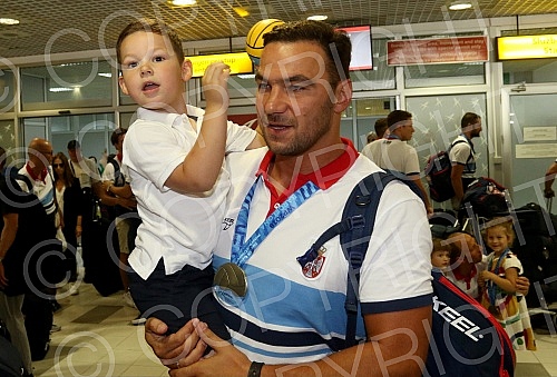 Arrival of the Serbian water polo team at the airport "Nikola Tesla" from Barcelona (Spain) after winning the gold medal at the European Water Polo Championship.