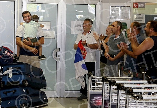 Arrival of the Serbian water polo team at the airport "Nikola Tesla" from Barcelona (Spain) after winning the gold medal at the European Water Polo Championship.