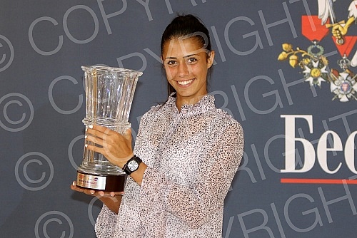 Press conference Olga Danilovic after returning from Moscow and winning the first WTA trophy.