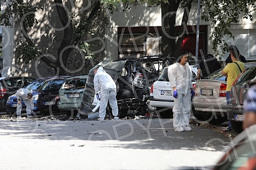 Burned jeep of Jovica Aleksic's boyfriend of tv host Dusica Jakovljevic. Spaljeni dzip Jovice Aleksica decka Dusice Jakovljevic.