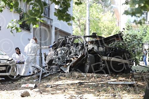 Burned jeep of Jovica Aleksic's boyfriend of tv host Dusica Jakovljevic. Spaljeni dzip Jovice Aleksica decka Dusice Jakovljevic.