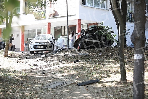 Burned jeep of Jovica Aleksic's boyfriend of tv host Dusica Jakovljevic. Spaljeni dzip Jovice Aleksica decka Dusice Jakovljevic.