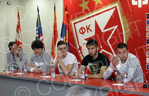 Konferencija povodom potpisavanja ugovora o saradnji izmedju FK Crvena Zvezda i 12 skola fudbala iz Srbije odrzana u medija centru FK Crvena Zvezda na stadionu `Rajko Mitic`.