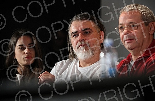 A press conference held in the Yugoslav Drama Theater on the occasion of the premiere of the play The Glass Gate. Odrzana konferencija za novinare u Jugoslovenskom dramskom pozoristu povodom premijere predstave Vrat od stakla.