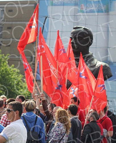 Na Trgu Slavija protestno okupljanje Novog sindikata Zdravstva i drugih sindikalnih organizacija pod nazivom "Prvomajski protest 20115 - Glas protiv bede i ponizenja".