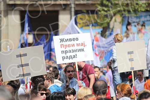 Na Trgu Nikole Pasica povodom Medjunarodnog praznika rada okupljanje clanova Saveza samostalnih sindikata Srbije i Ujedinjenih granskih sindikata "Nezavisnost".