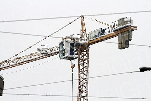 The crane in the center of Belgrade has curtailed and threatens to fall. Kran u centru Beograda se nakrivio i preti da padne.