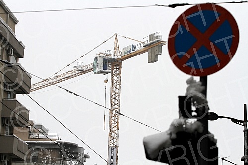 The crane in the center of Belgrade has curtailed and threatens to fall. Kran u centru Beograda se nakrivio i preti da padne.
