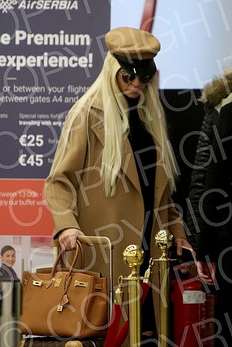 Singer Jelena Karleusa at the "Nikola Tesla" airport before the show in Vienna. Pevacica Jelena Karleusa na aerodromu "Nikola Tesla" pred nastup u Becu.