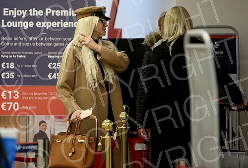 Singer Jelena Karleusa at the "Nikola Tesla" airport before the show in Vienna. Pevacica Jelena Karleusa na aerodromu "Nikola Tesla" pred nastup u Becu.