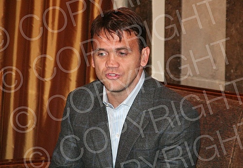 Football player Dejan Rambo Petkovic visiting City assembly. Fudbaler Dejan Rambo Petkovic u poseti kupstini grada.