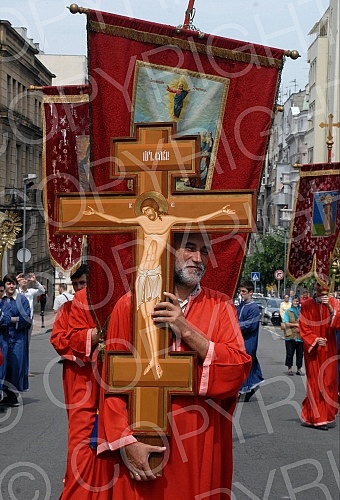 Svetom liturgijom u Vaznesenjsoj crkvi i svecanom litijom centralnim gradskim ulicama, obelezena slava grada Beograda - Spasovdan.