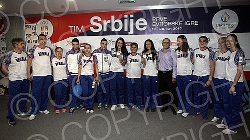 Docek tekvondo (tae kwon do) reprezentacije Srbije na aerodromu "Nikola Tesla" po povratku sa prvih Evropskih igara u Bakuu (Azerbejdzan).