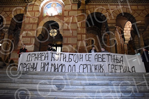 Support Meeting for Serbs and the Serbian Orthodox Church in Montenegro in front of Church of St. Mark.