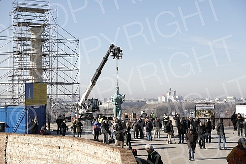 Winner statue returned to Kalemegdan after restoration.Statua Pobednika vracena na Kalemegdan posle restauracije