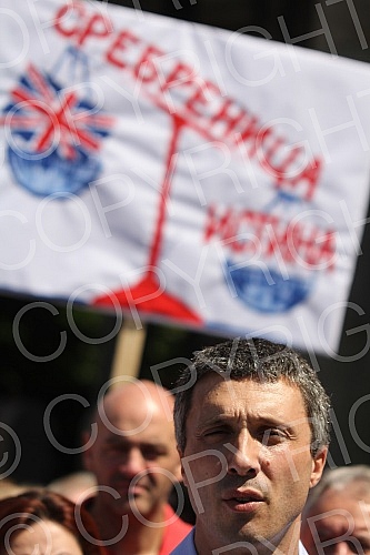 Konferencija za medije Srpskog pokreta Dveri ispred Crkve Svetog Marka u Beogradu povodom obelezavanja godisnjice zlocina u Srebrenici.