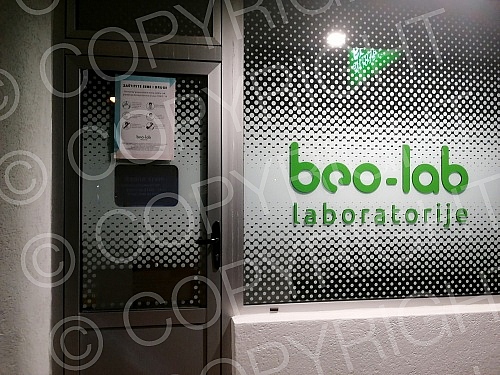 Obavestenje o merama zastite radi prevencije sirenja korona virusa COVID-19 na ulaznim vratima laboratorije.
