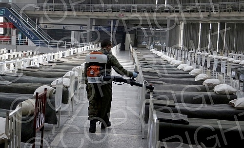 Military beds set up in the halls 1 and 4 of the Belgrade Fair for people with milder sympoms of coronavirus.