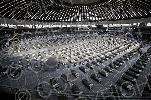 Military beds set up in the halls 1 and 4 of the Belgrade Fair for people with milder sympoms of coronavirus. Vojni kreveti postavjeni u halama 1 i 4 Beogradskog sajma za ljude koji imaju blaze simtome korona virusa.