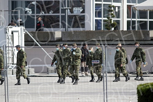 Poslednje pripreme na Beogradskom sajmu pred otvaranje privremenog centra za smestaj obolelih od korona virusa.
