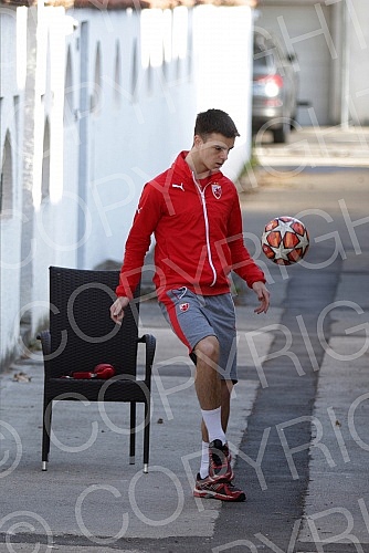 Former Red Star footballer, currently part of the team of Danish second baseman Andrija Rajovic, son of singer Boban Rajovic, practices with the ball outside the house.