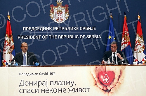 At the Palace of Serbia, President of Serbia Aleksandar Vucic met with ambassadors of EU member states in Serbia.U Palati Srbija predsednik Srbije Aleksandar Vucic sastao se sa ambasadorima zemalja clanica EU u Srbiji.