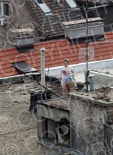 Stanovnici Beograda na terasama i krovovima zgrada tokom policijskog casa koji je poceo u peak u 18.00 casova, a zavrsava s