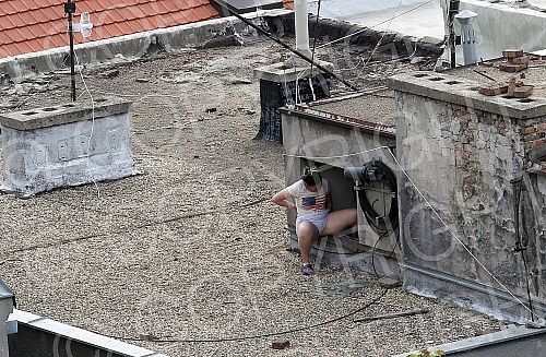 Stanovnici Beograda na terasama i krovovima zgrada tokom policijskog casa koji je poceo u peak u 18.00 casova, a zavrsava s