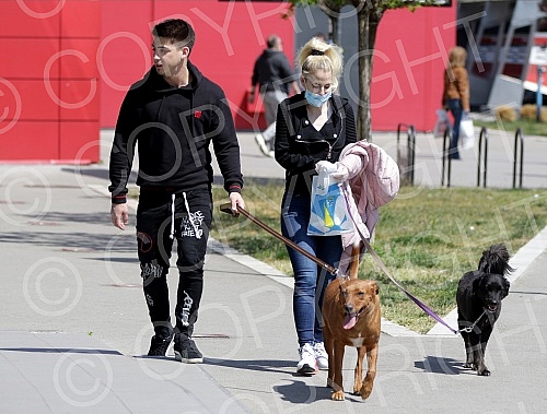 Singer Sara Reljic with brother Filip walking dogs (paparazzo). Pevacica Sara Reljic sa bratom Filipom seta kucice (paparaco).