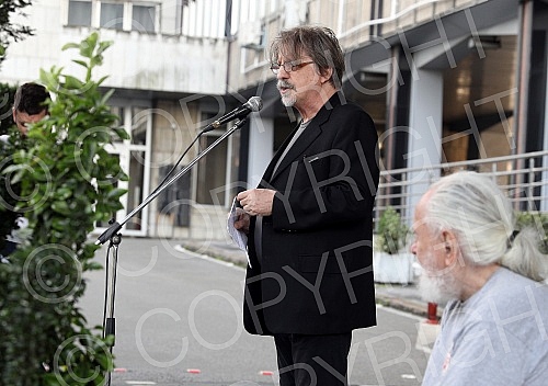 In front of the Ministry of education, celebrities read poetry by Desanka Maksimovic.