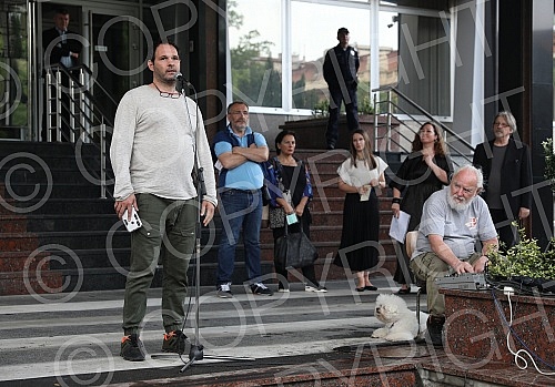 In front of the Ministry of education, celebrities read poetry by Desanka Maksimovic.