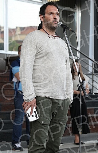 In front of the Ministry of education, celebrities read poetry by Desanka Maksimovic.