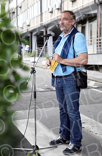In front of the Ministry of education, celebrities read poetry by Desanka Maksimovic.