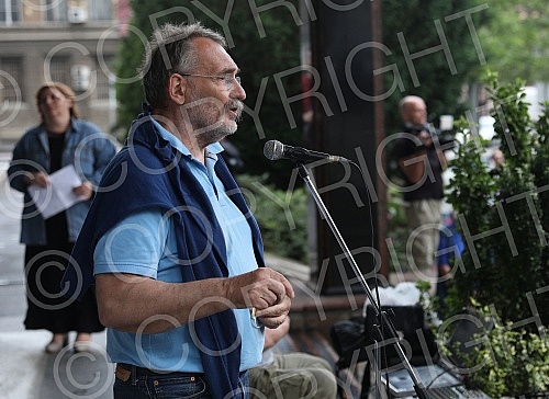 In front of the Ministry of education, celebrities read poetry by Desanka Maksimovic.