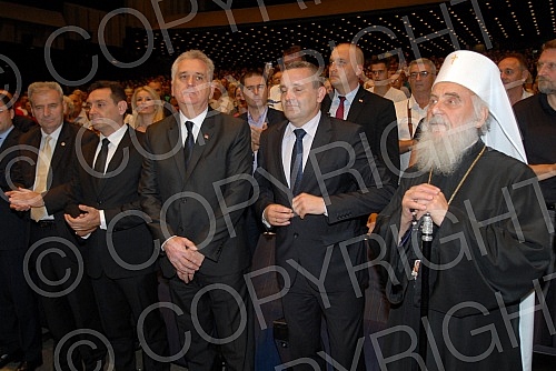 Svecana akademija povodom 20.godina od akcije hrvatske "Oluja" gde je proterano srpsko stanovnistvo iz Hrvatske, odrzana u Sava centru. Tomislav Nikolic - predsednik Republike Srbije i Patrijarh Srpski Irinej.