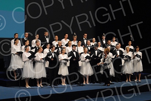 Svecana akademija povodom 20.godina od akcije hrvatske "Oluja" gde je proterano srpsko stanovnistvo iz Hrvatske, odrzana u Sava centru. Tomislav Nikolic - predsednik Republike Srbije i Patrijarh Srpski Irinej.