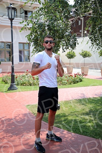 Boxer Veljko Raznatovic in the camp on Avala where he trains. Bokser Veljko Raznatovic u kampu na Avali gde trenira.
