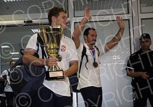 Dolazak srpske vaterpolo reprezentacije na aerodrom "Nikola Tesla" iz Kazanja (Rusija) posle osvojenog prvog mesta na Svetskom prvenstvu u vaterpolu.