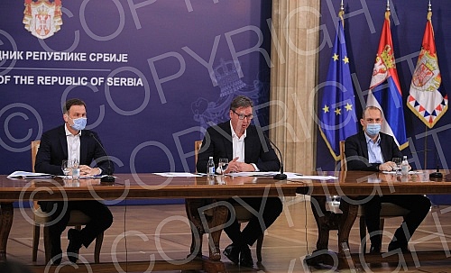 The President of the Republic of Serbia, Aleksandar Vucic, held a press conference in the building of the General Secretariat of the President of the Republic of Serbia.