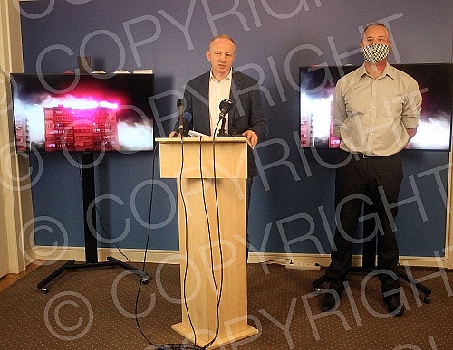 In the premises of the Party of Freedom and Justice, a press conference of the President of the SSP, Dragan Djilas, on the trial for the alleged violation of the ban on movement during curfew.