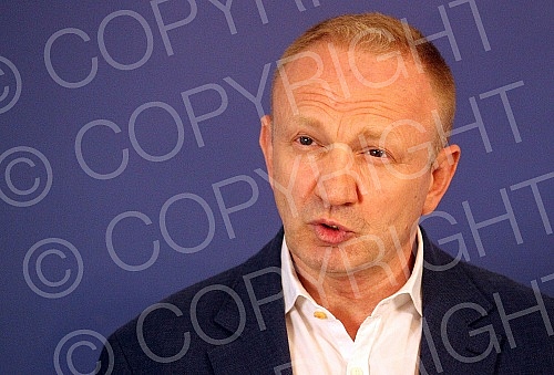 In the premises of the Party of Freedom and Justice, a press conference of the President of the SSP, Dragan Djilas, on the trial for the alleged violation of the ban on movement during curfew.