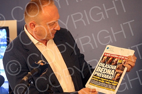 In the premises of the Party of Freedom and Justice, a press conference of the President of the SSP, Dragan Djilas, on the trial for the alleged violation of the ban on movement during curfew.