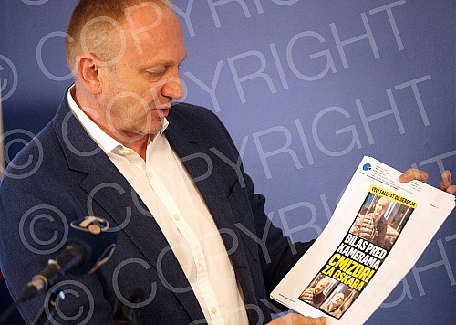 In the premises of the Party of Freedom and Justice, a press conference of the President of the SSP, Dragan Djilas, on the trial for the alleged violation of the ban on movement during curfew.