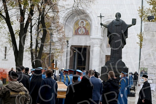 The coffin with the remains of Patriarch Irinej arrives at the Temple of Saint Sava. Kovceg sa zemnim ostacima patrijarha Irineja stize u Hram Svetog Save.