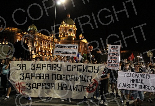 Protest koji je organizovalo pravoslavno bratstvo Istinoljublje. Skup je organizavan zbog menjanja pravoslavnih i hriscanskih vrednosti a povodom predstojece Parade ponosa koja se odrzava u nedelju u Beogradu.