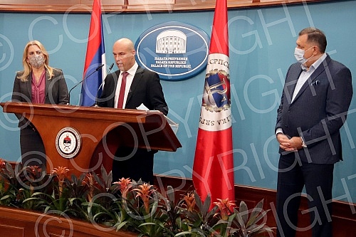 Press conference after the meeting of Milorad Dodik, with Zeljko Cvijanovic and Milan Telgetija, the president of the High judicial and prosecutorial council, who has been receiving death threats these days.