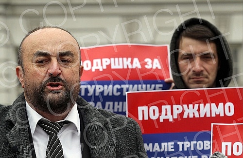 Dveri Vice President Ivan Kostic and Milovan Jakovljevic held a press conference on "Emergency measures to save the Serbian economy and agriculture" in front of the Ministry of Economy building.